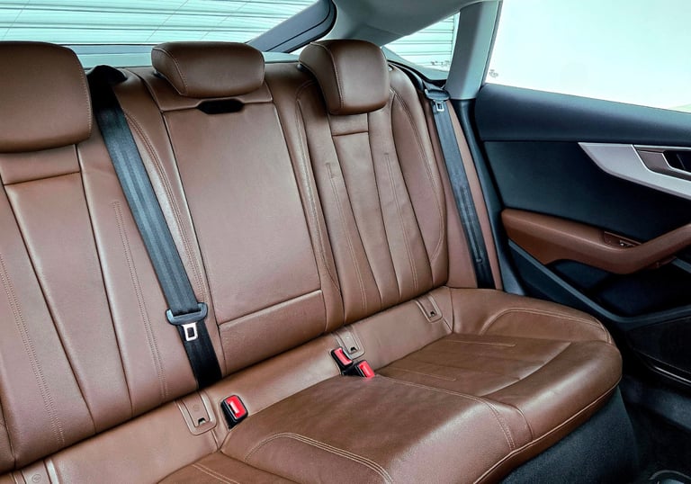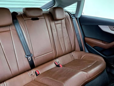 Leather upholstery. Original interior, Original 7-inch infotainment system with Apple/Android CarPlay. Upgraded 19" Audi 5-Arm Ramus Black Rims, Audi RS Front Grill, RS5 Virtual Cockpit Display, Upgraded Speakers & Subwoofer, too many upgrades to be listed.