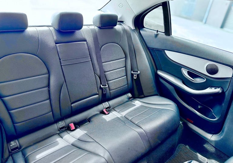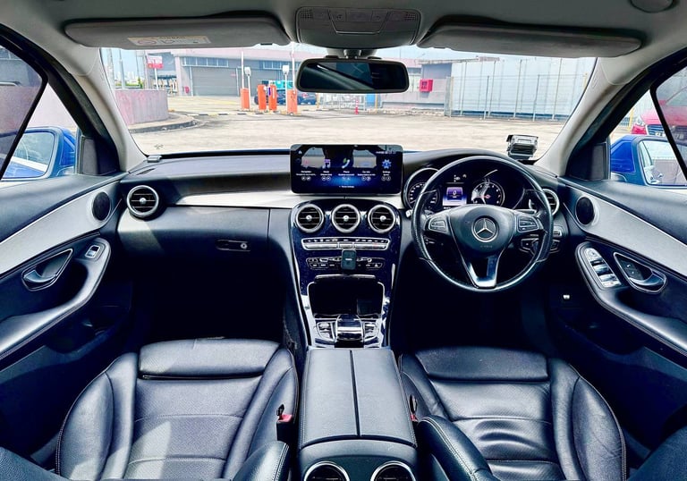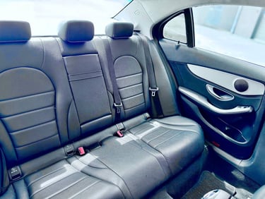 Premium leather upholstery. Upgraded infotainment system with Apple/Android CarPlay. Original interior. AMG original 19-inch rims, Ambient lighting, illuminated vanity mirrors, Map-reading lamps, Overhead console with sunglass holder, and a Reverse camera.