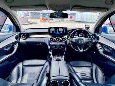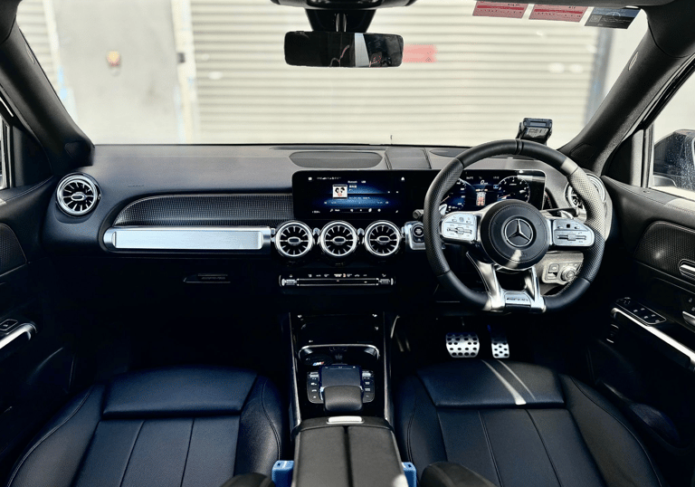 Premium Leather upholstery. Dual 10.25″ MBUX screens with touchscreen system. Ambient lighting (64 colours). Touchpad with handwriting recognition & voice control. Vanity mirrors, Rear reading lamps, Glovebox with cooling, and many more!
