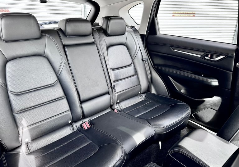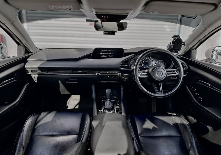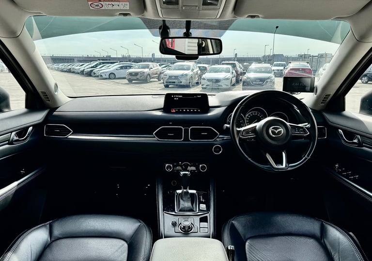 Leather upholstery. Original 8.8″ Mazda Connect screen with Apple/Android CarPlay. Original interior, 8-speaker sound system, Electric Seat, Push-button start, Keyless entry, Sunglasses holder, Vanity mirrors with lights, and a Reverse camera.