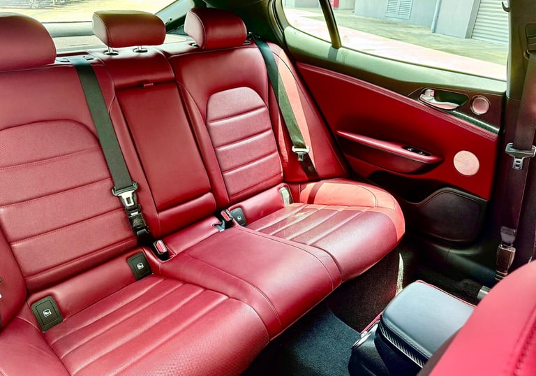 Nappa leather upholstery. Original 8" touchscreen infotainment system with Apple/Android CarPlay. Original 19-inch rims, Harman Kardon sound system, 6 Pot front Brembo brakes & 4 Pot rear Brembo brakes, Ventilated & Heated seats, Heated steering, Keyless entry, Auto Start-Stop button, Electric Tail-Gate, Auto-Folding mirror, Reverse camera, and many more.