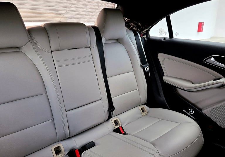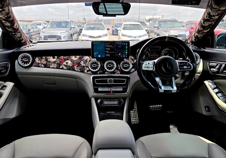 Beige Leather upholstery. Upgraded Dashboard & Pillars interior. Upgraded 10.2" infotainment system with wireless Android & Apple CarPlay, 18-inch AMG turbine rims, 4-Pot Brembo BBK, upgraded CLA45 bodykit, too many upgrades to be listed.